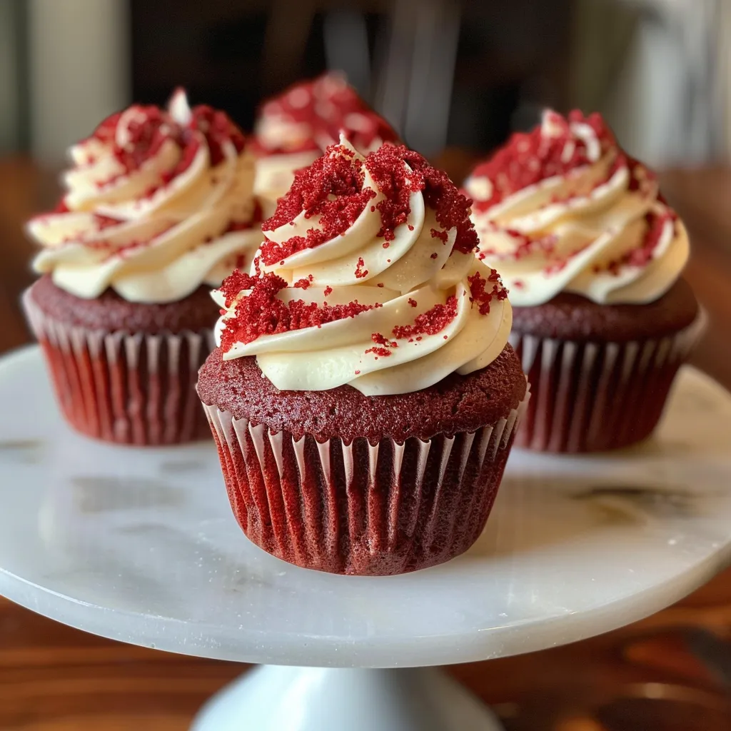 - Frost your cupcakes: Once cooled, generously frost the cupcakes with cream cheese frosting and garnish with red velvet crumbs or festive toppings if desired.